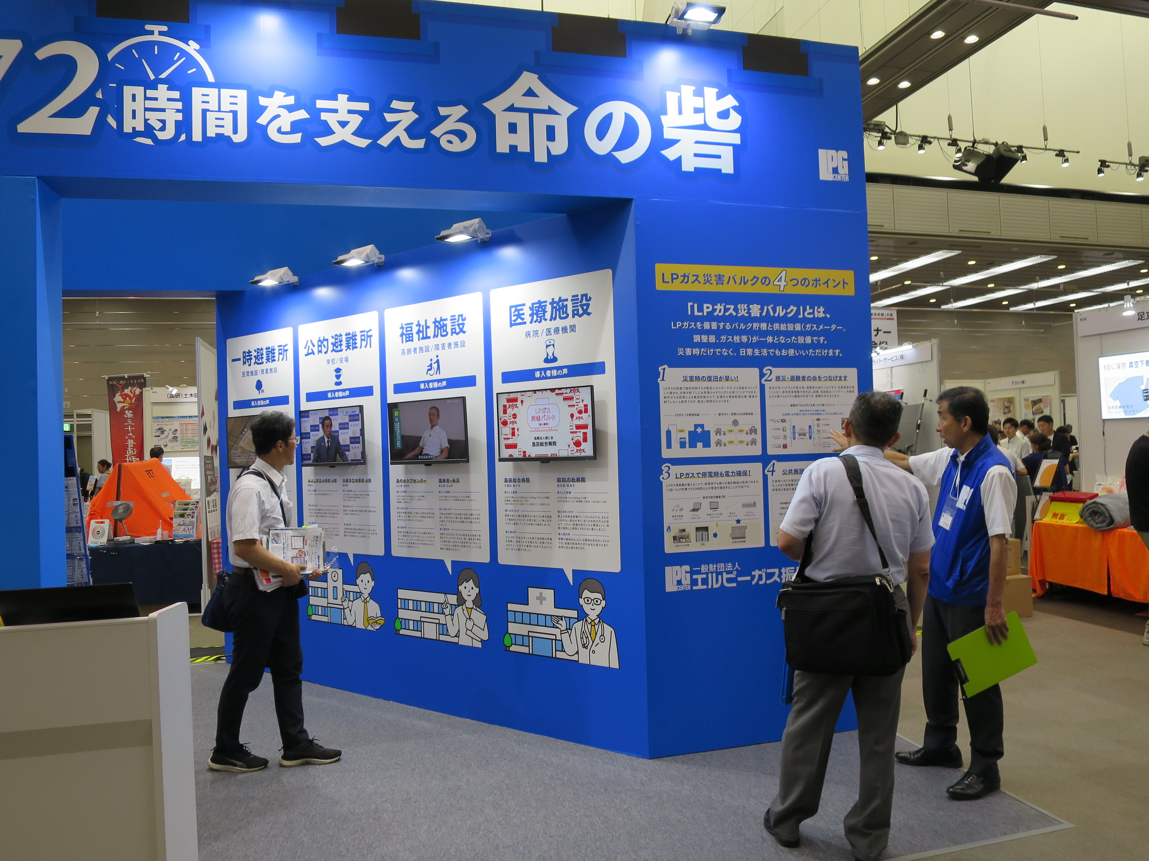 一般財団法人エルピーガス振興センターは、災害時に避難困難者が多数発生する施設また避難所等へのライフライン維持や、自衛的燃料備蓄補助金を活用したLPガス設備の導入推進に関連して、災害時におけるLPガスの有効性や強靭性をアピールするため、燃料備蓄補助金広報活動の一環として7月3日(木)~4日(金)の2日間、マイドームおおさか(大阪府大阪市)において開催された「第12回『震災対策技術展』大阪」に出展しました。