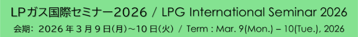 「LPガス国際セミナー2026」を2026年3月9日(月)〜10日(火)の2日間、日経ホール(東京・大手町)にて開催いたします。詳細は追って公表いたします。 |