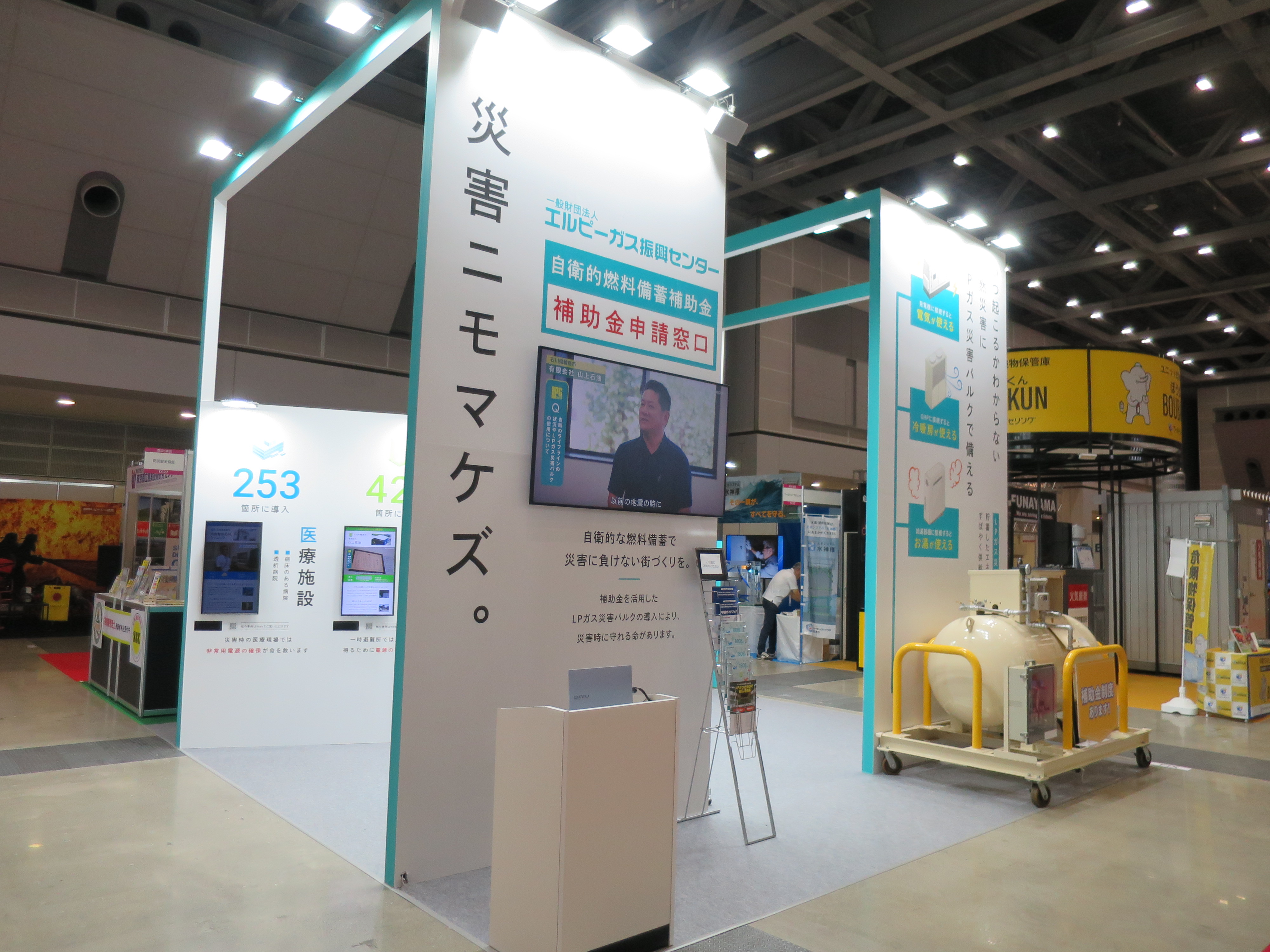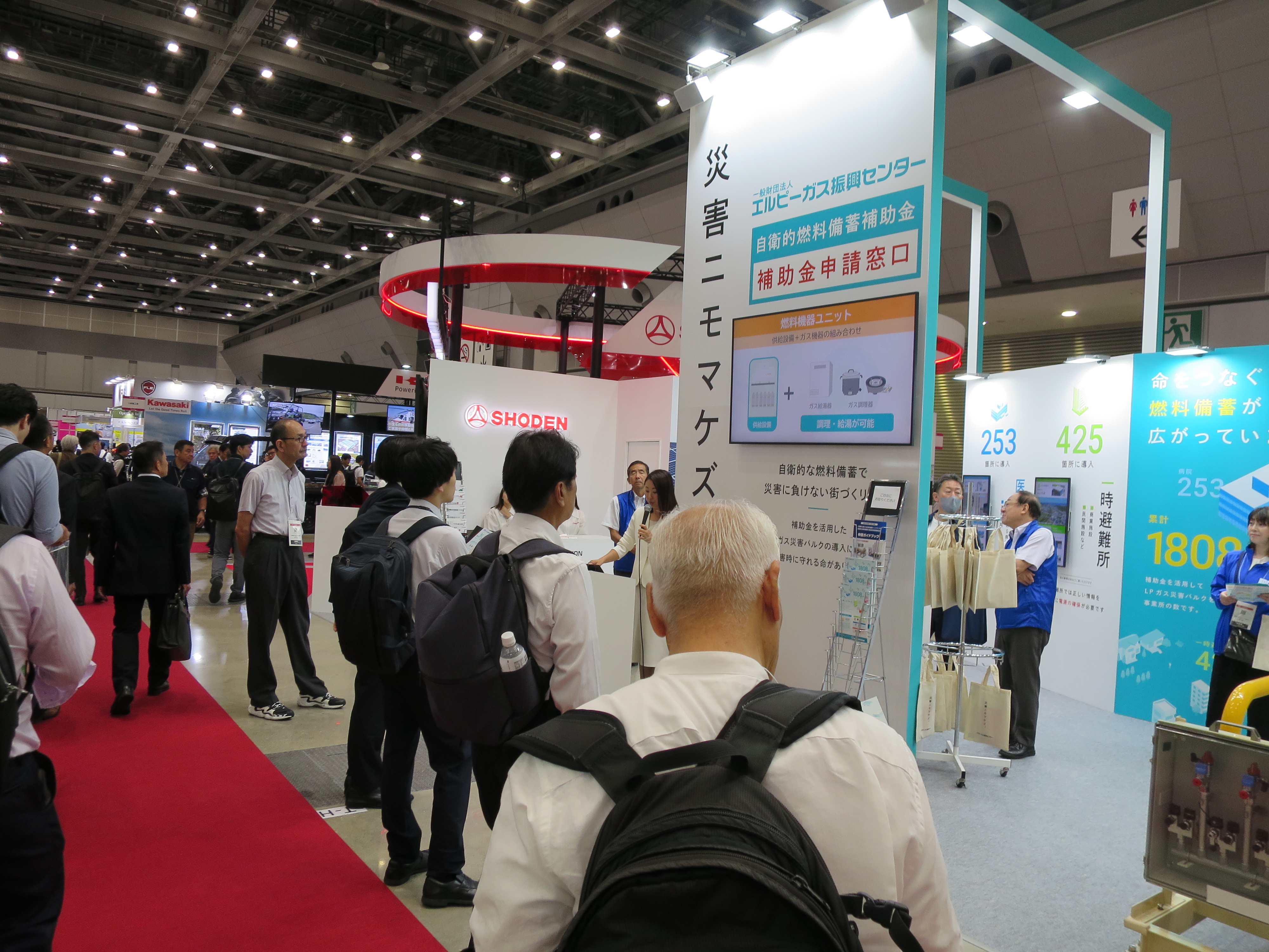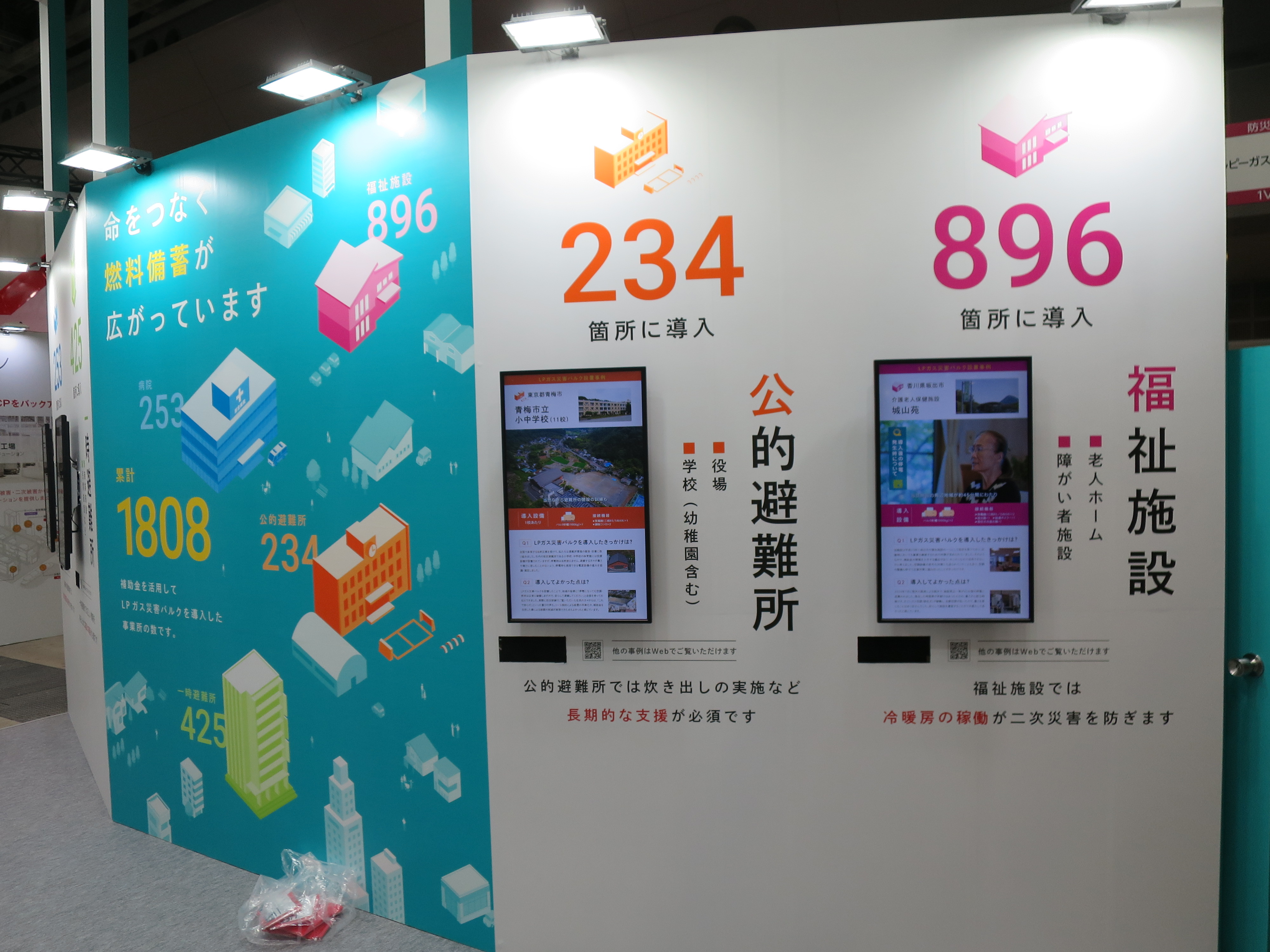 ブースでは、燃料備蓄補助金の制度や有効性を説明するパネルのほか、「医療施設」「福祉施設」「公的避難所」「一時避難所」といった施設別の設置事例を紹介する動画やパネル、さらに能登半島地震被災地の特集動画を配信しました。